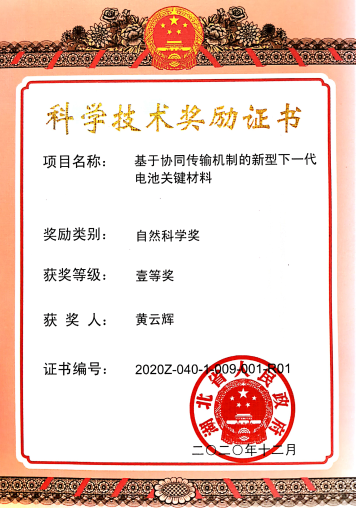 其中,新能源材料与器件研究中心黄云辉教授团队的“基于协同传输机制的新型下一代电池关键材料”项目获湖北省自然科学一等奖。