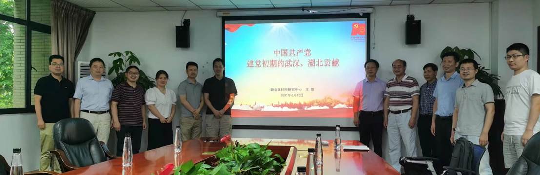 中国共产党建党一百周年临近,中心组织师生学习建党初期的武汉、湖北贡献,寄希望于中心全体师生——能够继往开来、不忘初心、更创佳绩。会后大家参观了新金属材料研究中心柳林教授等老师的实验室,就相关仪器设备与科研方向进行了详细交流。