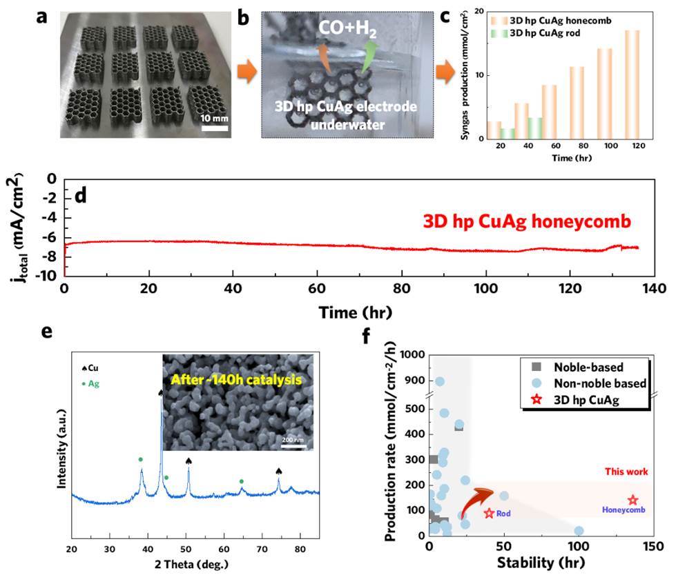 二氧化碳是造成全球变暖的主要原因之一,而电催化还原二氧化碳为碳捕获提供了一种新的技术手段。利用CO2还原与析氢反应(HER)反应耦合,可以产生具有高经济效益的合成气(H2+CO),从而为多种工业化学反应提供前驱体。然后,现有催化剂在调控合成气比例(H2/CO)、产率以及电化学稳定性方面仍有待进一步改善。例如,大多数研发的合成气电催化剂的稳定性低于24h,限制了其实际应用。