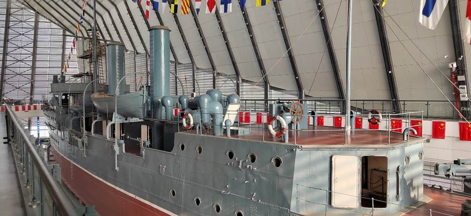 中山舰”原名“永丰舰”,它是以孙中山先生名字命名的中国近现代史上的一代名舰。1910年由清政府向日本长崎三菱造船所订造。1912年6月建成下水。1913年加入中国海军。1922年6月孙中山先生登临该舰指挥平定陈炯明叛乱。1925年4月为纪念孙中山先生,将永丰舰易名为中山舰。1938年参加“武汉会战”,同年10月24日在抗击日军的战斗中被日机炸沉于长江金口水域。1997年打捞出水。2001年修复竣工。2008年5月陈列于中山舰博物馆舰体陈列厅。