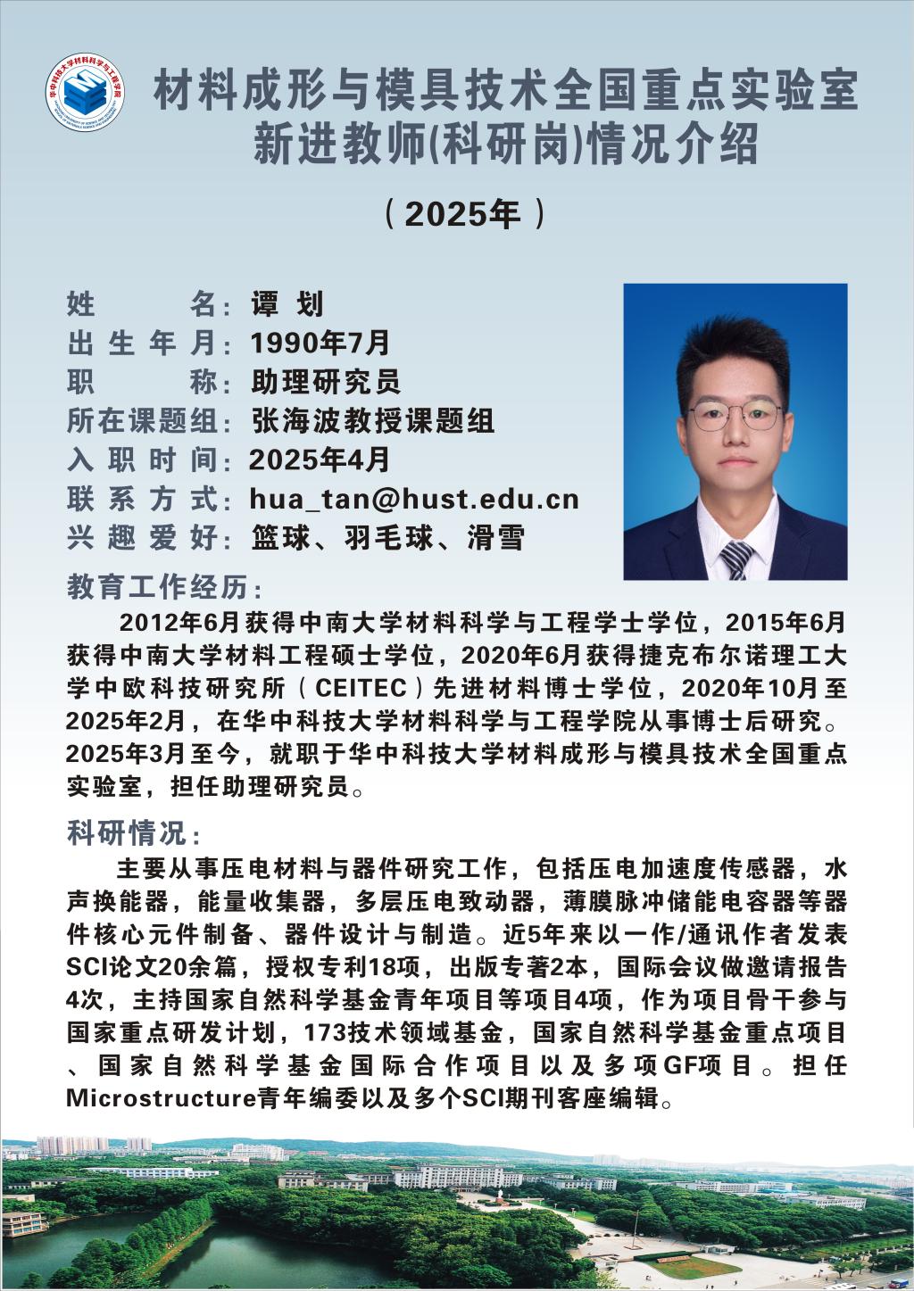 材料成形与模具技术全国重点实验室2025年新进教师的情况介绍如下: