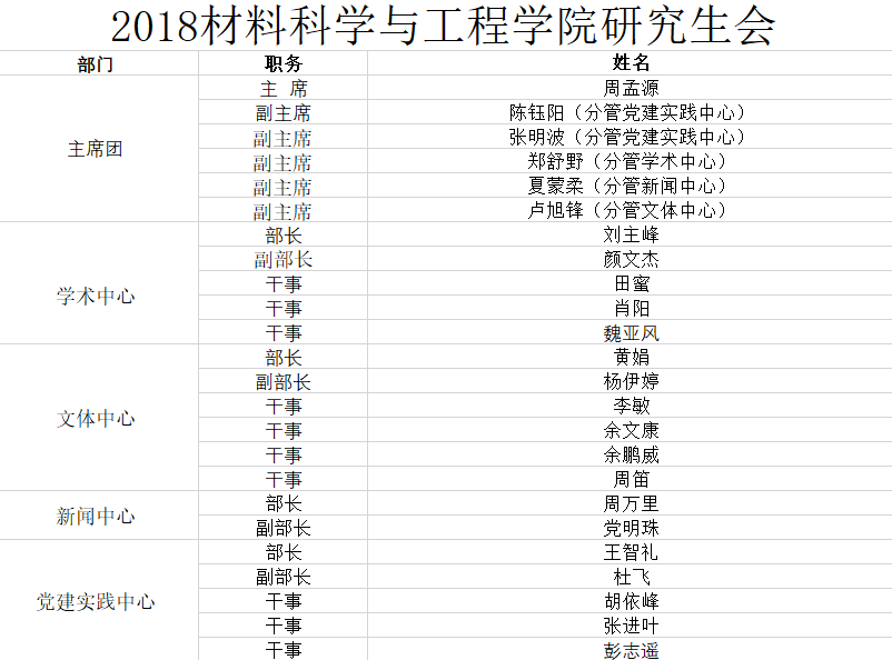 经本人申请,A漫 面试考察,研究生代表大会推举,现已产生A漫 2018研究生会成员名单。现将该名单公示如下: