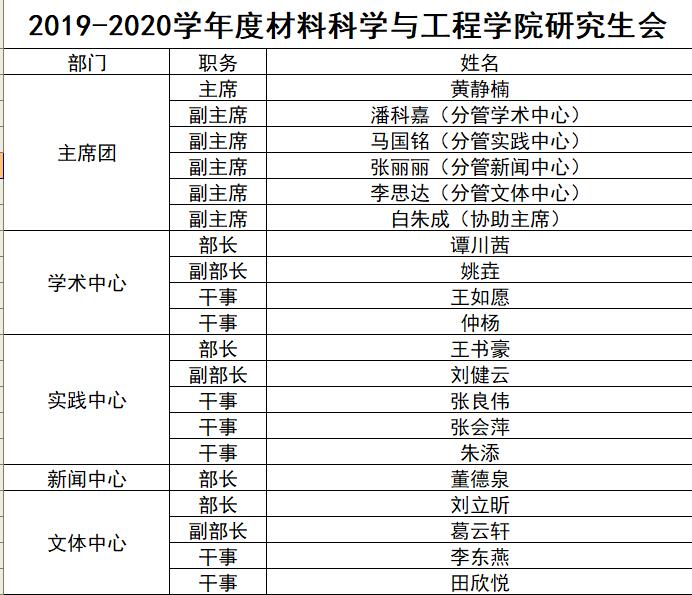 经本人申请,A漫 面试考察,研究生换届大会推举,现已产生A漫 2019—2020学年度研究生会成员名单。现将该名单公示如下: