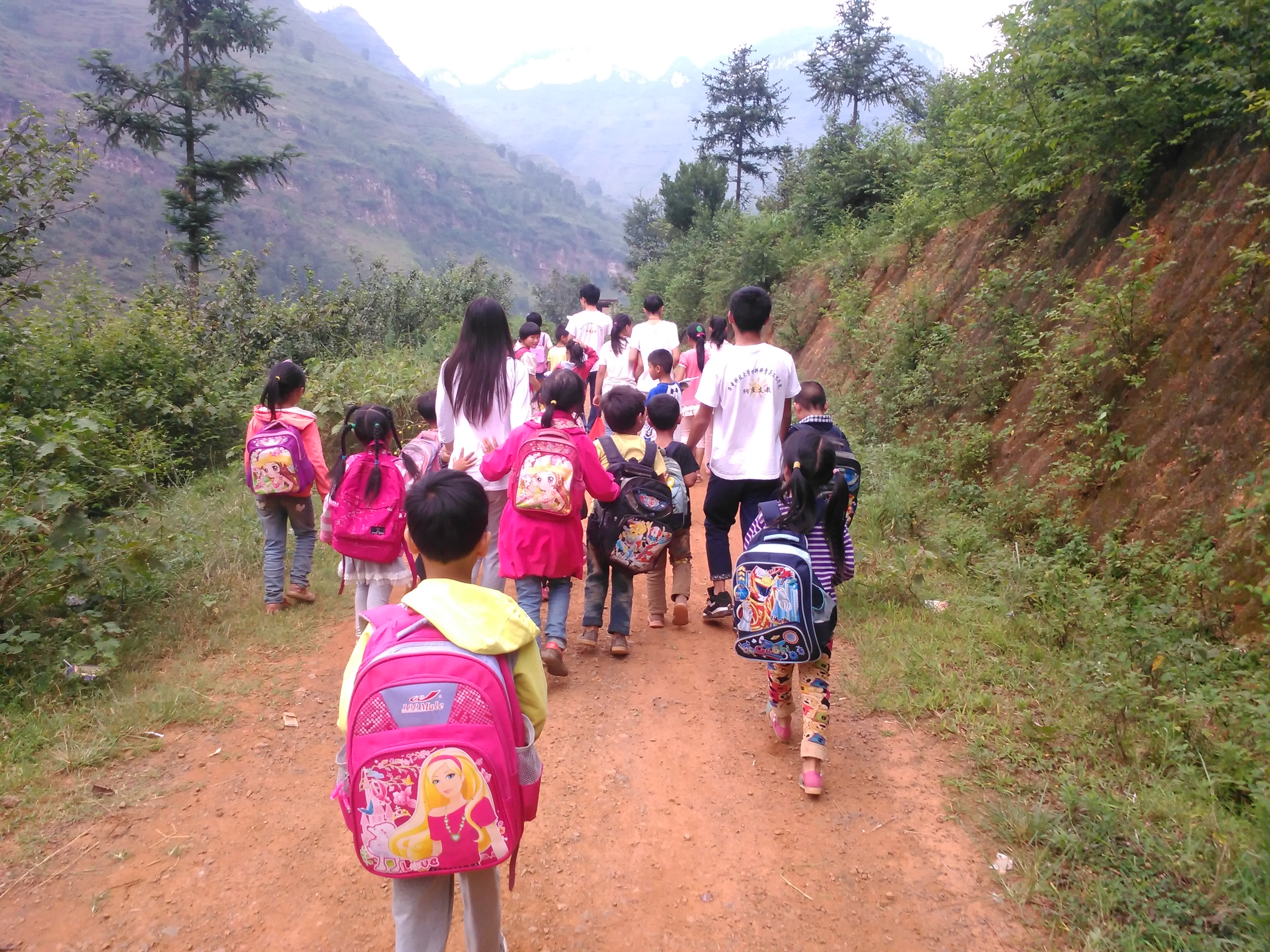 我们将参与支教活动的40名学生根据年级分成大、中、小三个班,每个班各由两名我们支教队员担任班主任老师。早上和中午各有四十分钟的自习课,由我们辅导他们做暑假作业。校长要求我们下午四点之前必须放学,让孩子们有充足的时间回家,山路崎岖而且大部分学生家离学校还比较远,五点钟的时候我们的班主任需要给家长打电话,确认孩子们全部安全到家。