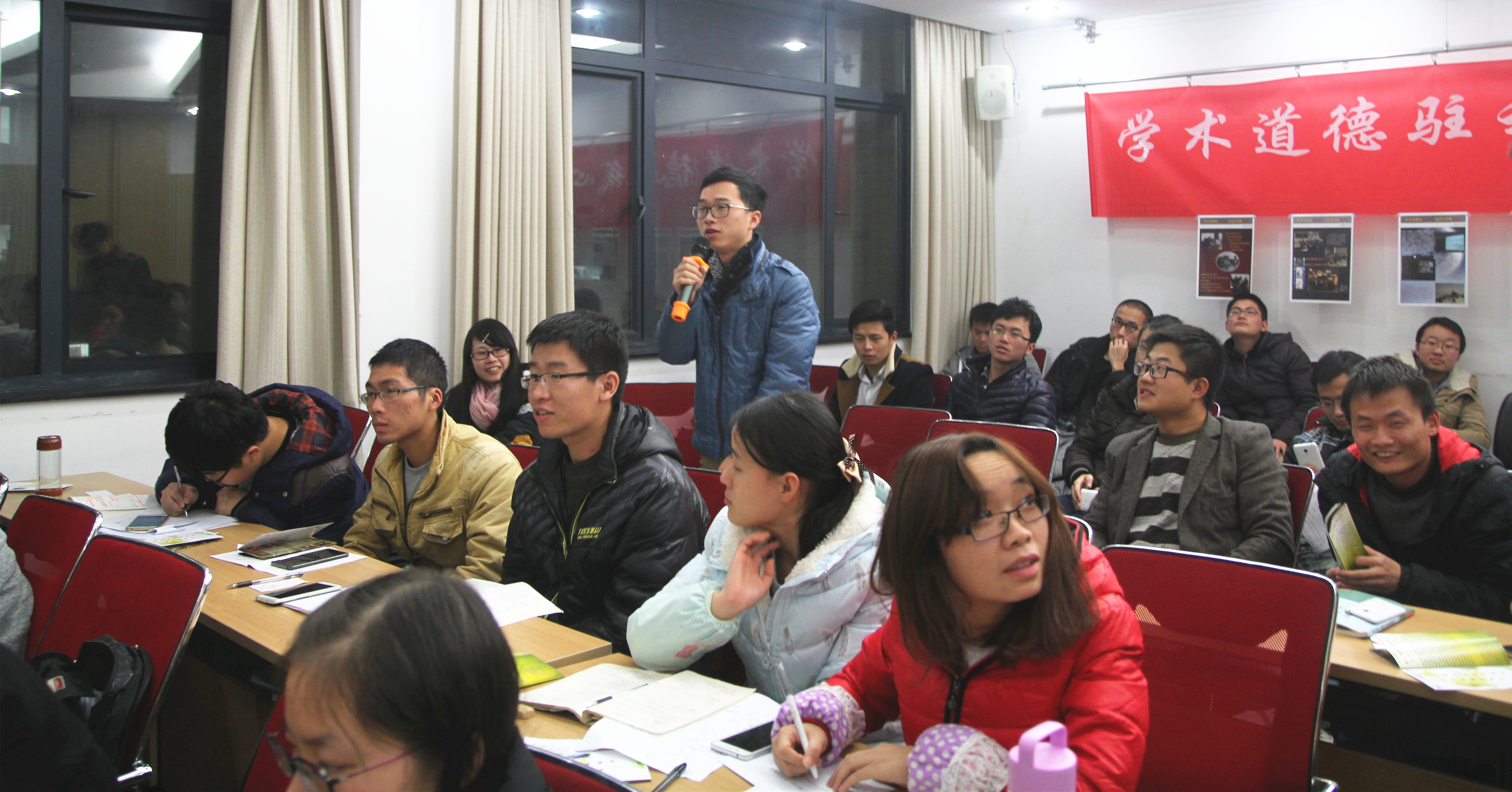 最后,现场同学们针对自己在生活中出现的论文写作问题,学术中的道德问题请教了蒋老师,蒋老师通过自己的切身体会给同学们指明了方向。其中一名同学问道:校外机构挂我的名字发论文,而我并没有参与论文工作该怎么办?蒋老师建议一律回绝,一方面是因为这件事情原则上就是学术不诚信的行为,另一方面论文中可能出现的问题将极大的影响学生的学术前途。