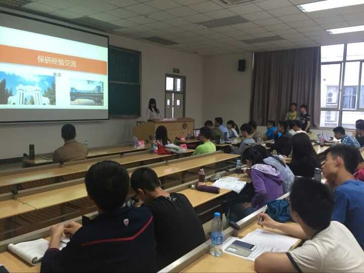 的林惠、保研清华大学孙伟召以及保研上海交大的杜思琪这些各方面突出的大四学生作为嘉宾。他们以自身为例分析了当前的读研的情况,并且也分别对能力不同的低年级学生提出了相应的建议。这些方法都源于自身经验,对于处在迷茫期的低年级学生是一笔宝贵的财富,既能够明确前来参加交流会同学的目标,也增强了他们对未来的信心。