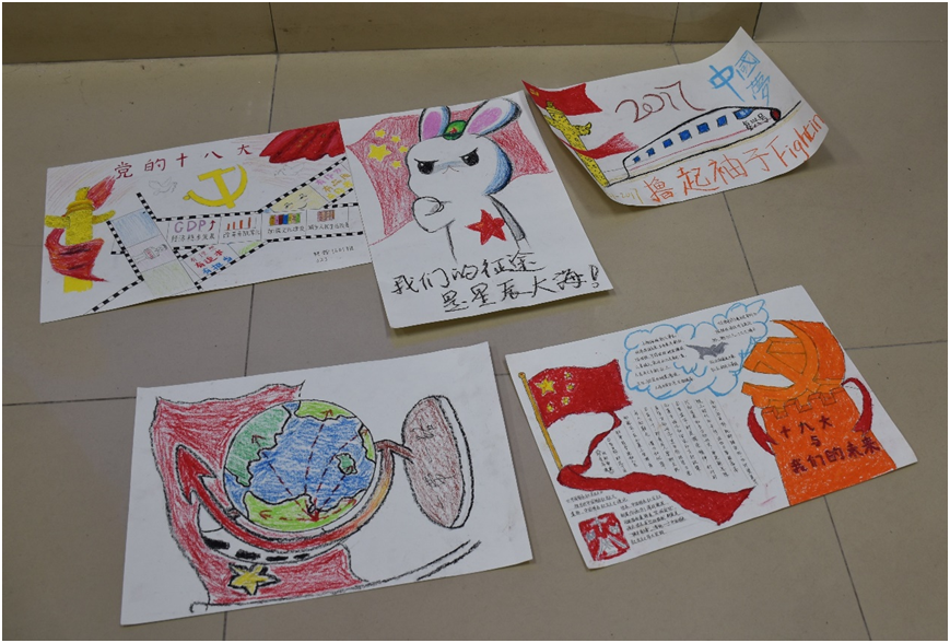 活动分为两个部分,分别是“我手绘我心”绘画展和“我口述我心”演讲比赛。“我手绘我心”活动中,同学们以寝室为单位,上台展示并解说自己寝室创作的展现十八大以来身边变化的手绘作品。七个寝室的画作都各有特色,其中女生寝室的手绘《我们的征途是星辰大海》以雄赳赳气昂昂的小兔子形象来展示十八大以来中国的风采,获得一致好评,赢得一等奖。“我口述我心”活动以演讲比赛的形式开展,七位参赛选手通过精彩的演讲讲述了十八大以来自己身边的变化。姚莹同学生动的讲述了党的惠民政策给自己家乡带来的改变,引起大家共鸣,掌声不断,获得了冠军。