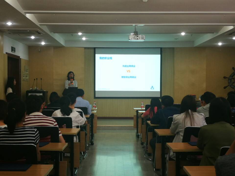 下午4点整,活动准时开始,ATL招聘总负责人汪淳经理作为一名资深的HR为同学们带来了一场精彩的职业生涯发展规划讲座,给同学们分享了一些实用的面试技巧。讲座期间,2017级硕士邹云同学和2014级博士刘清同学分别分享了自己的职业规划,汪淳经理针对他们的规划提出了一些合理的建议。