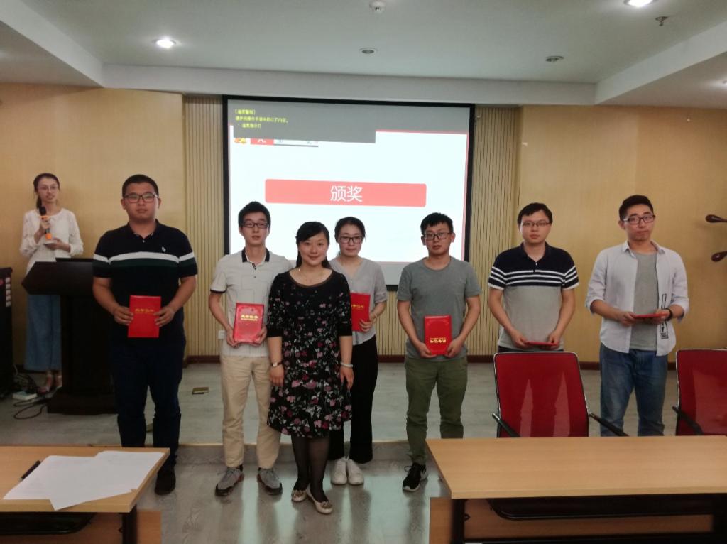 紧接着是知识竞赛环节,主要包括党员知识笔试、红歌抢唱和党史知识竞答部分。党员知识笔试环节结束后进入到红歌抢唱环节中,选手需根据现场播放的音乐听辩出歌名进行抢答并接唱歌曲。在浓烈的爱国歌曲中,选手们一展歌喉,现场氛围欢快而火热。经过前两轮的比拼,共有四支队伍进入最终党史知识竞赛环节。每队轮流答题,答题期间,各队队员集思广益,积极思考,对答如流,折射出党员对党史知识的深刻理解。经过三轮角逐,现场统计出的比赛结果,2017级博士党员伍宏志同学个人成绩最高,获得个人项目冠军;团队最高成绩由2017级伍宏志、黄耀东和陈宁等三位同学组成的队伍获得。王曦老师为获奖党员和小组进行颁奖。颁奖结束后,全体党员起立宣誓入党誓词,在庄严的宣誓声中结束了本次活动。