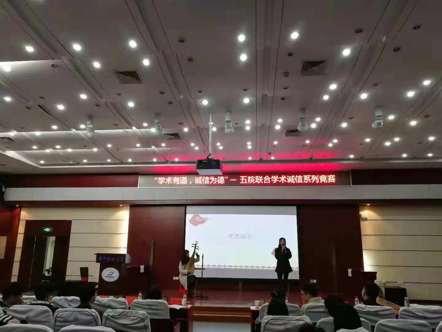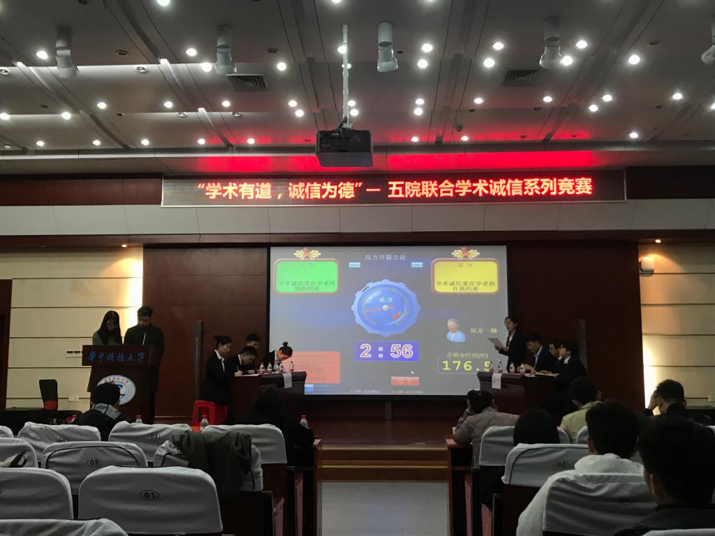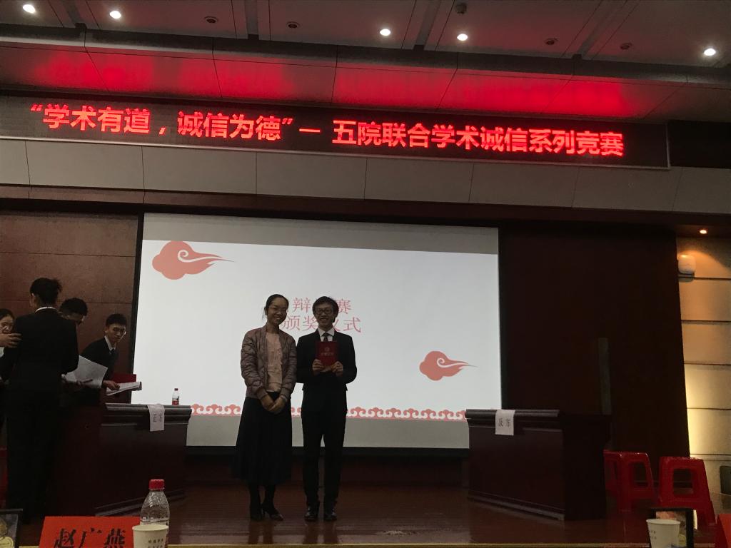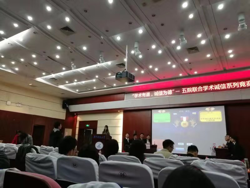 学术报告厅举行学术诚信辩论赛。我院研究生三好标兵、优秀学生代表陈安南博士担任本次竞赛评委。
