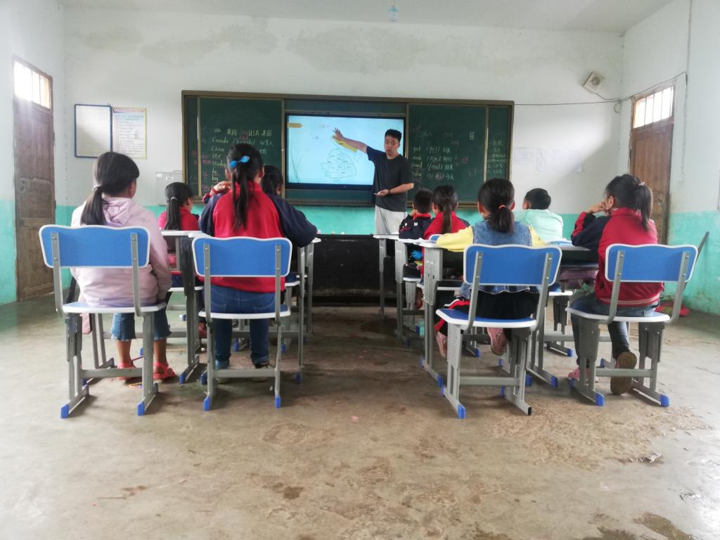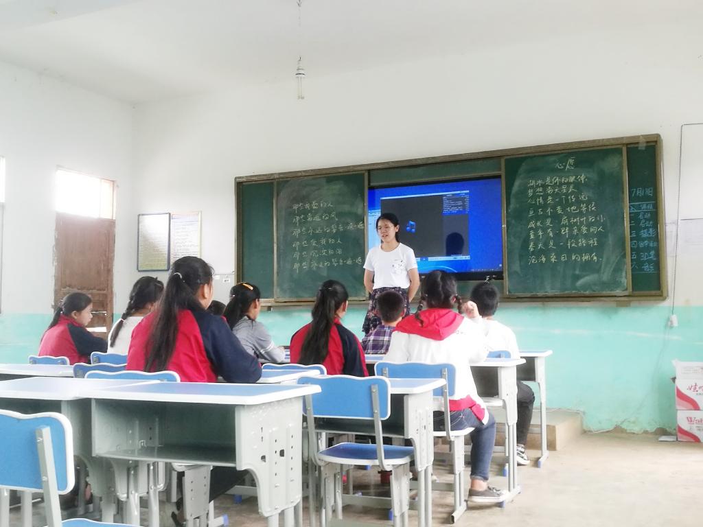 “成长是一扇树叶的们,童年有一群亲爱的人;春天是一段路程,沧海桑田的拥有;那些我爱的人,那些永远的誓言一遍一遍”。研究生高妞同学通过教唱歌曲《心愿》,希望孩子们永远保持积极向上的人生态度,向着希望奋进,尊重自己,尊重心愿。