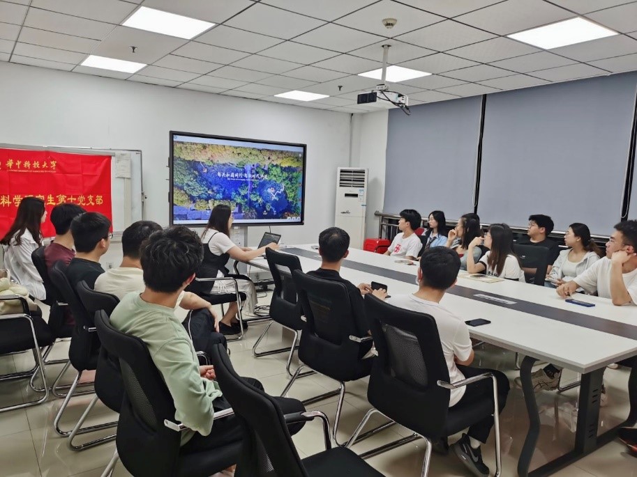 活动初始,党支部书记杨少婷对前期实践活动进行了总结,并对本次活动的目的进行说明。自“校史文化月”开始以来,全体党团员已参观校史陈列馆,系统学习了华中大校史,然后以小组为单位打卡校园地标并拍摄介绍视频,并在打卡过程中将轨迹路线绘制为数字“70”献礼校庆。本次活动旨在对校史文化月进行阶段性总结,并继续深入学习,加强总结交流,通过知识竞赛的形式巩固和检验学习成果。