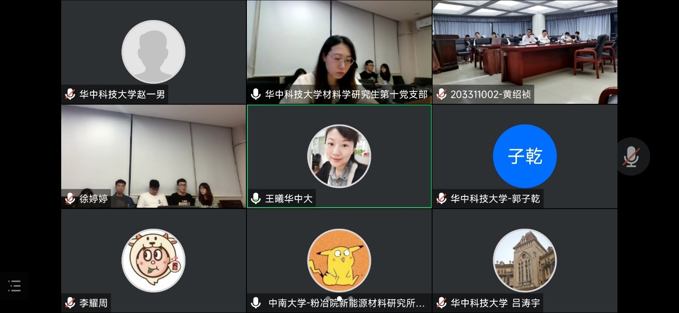 王曦老师致开场词。在共产主义青年团成立100周年的重要时刻,两所学校的党员同志冲破疫情阻隔,相聚云端,共话科研创新,是一次互相学习、互相交流的好机会。王曦老师激励新时代的材料人,生逢其时,重任在肩,应当继承发扬五四精神,踔厉奋发,笃行不怠,心系国是校史院史事,共学共创共发展。