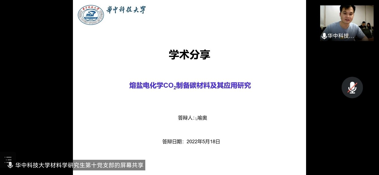 喻奥博士分别进行了题为《锂离子电池富锂锰基正极材料的电子结构调控与机理探究》和《融熔盐电解合成碳基材料及其电化学性能研究》的学术报告,并在报告结束后进行了交流探讨。