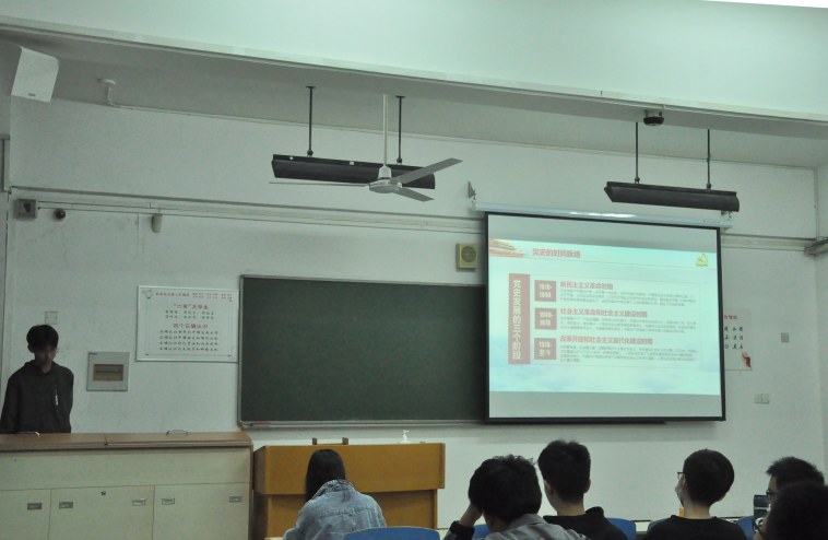班长吴泽楷为同学们介绍四史发展脉络,强调了习近平总书记所说的“历史是最好的教科书”,引领同学们深刻认识中国革命史的现实意义,了解祖国发展不易,倡导同学们从历史中汲取知识经验、培养爱国情怀。