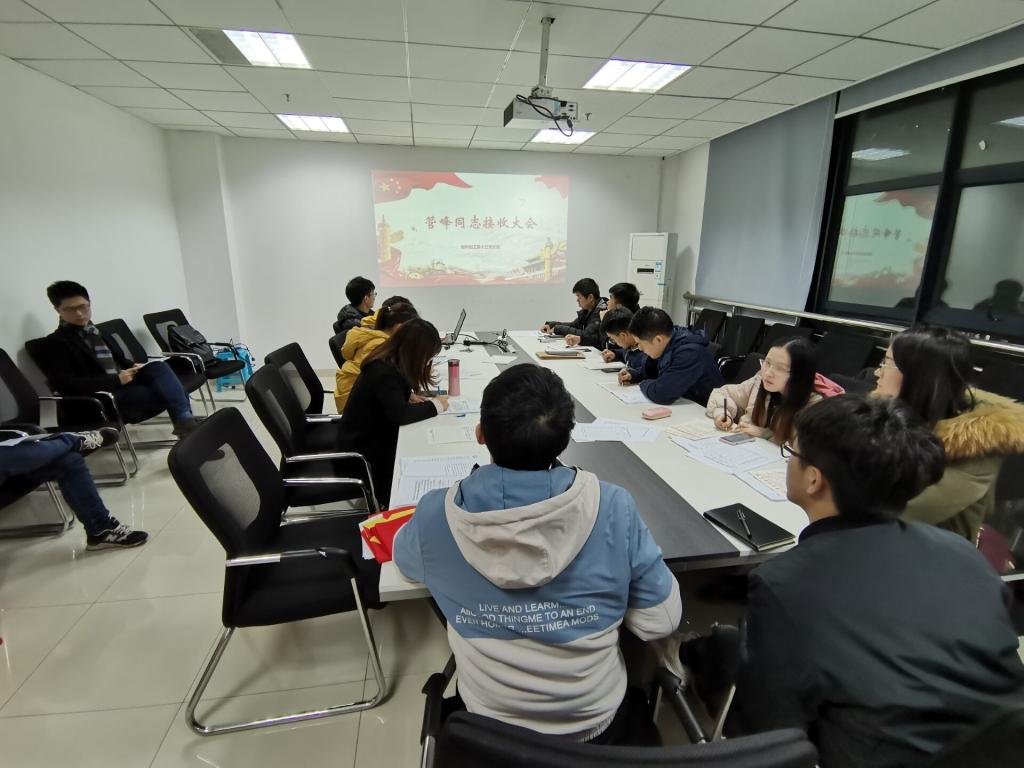 其后,党支部书记高妞同志主持召开了管峰同志预备党员接收会议,会议分为四个流程。首先是管峰同志介绍个人成长履历、思想及学习情况;二是入党介绍人介绍管峰同志平时表现情况以及普通群众谈论对管峰同志的认识与评价;三是与会党员发表意见,并实行无记名投票,经过无记名投票,全票通过,同意管峰同志转为预备党;最后,管峰同志表示日后将以党员的身份严格要求自己,加强理论学习,增强政治意识,提高政治素养,努力发挥党员先锋模范作用,全心全意为人民服务,并宣读入党誓词。