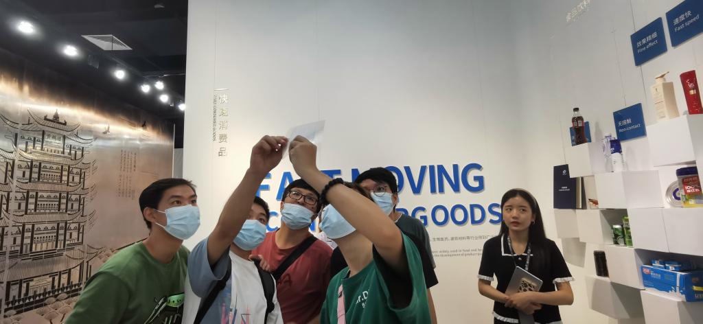 最后,在讲解员的带领下,研究生杨化雨被选为幸运队员,领取了激光科技馆的小礼品。杨化雨同学现场用电子笔签名后传送至礼品制作装置上,不到一分钟的时间,由激光加工而成的精美小礼品就已经包装完毕。研究生同学们被礼品制作的速度和精美程度所震撼,真切地感受到了高新技术发展带来的独特魅力。