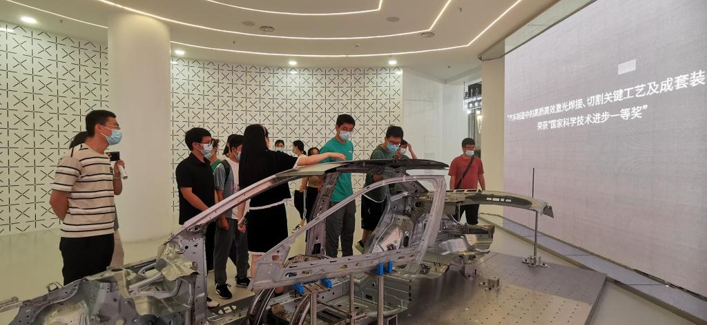 的研发团队时,顿时为母校感到自豪。队员们了解到激光在汽车制造中的应用非常广泛,白车身已进入激光焊接时代,采用激光焊接的方式不仅可以降低车身重量、提高车身的装配精度、提升汽车制造效率、降低汽车生产成本,同时还能大大加强车身的强度,在用户享受舒适的同时,为其提供更高的安全保障。