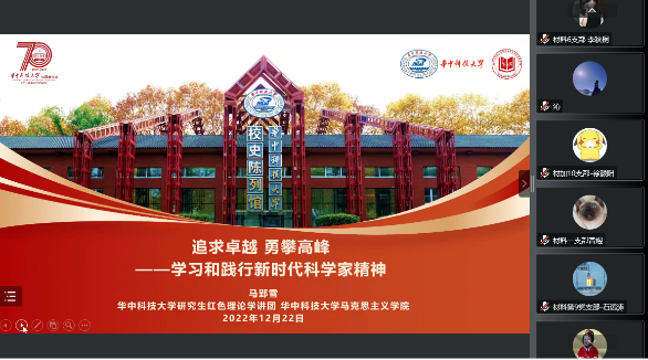 正如梁启超先生《少年中国说》所言,“故今日之责任,不在他人,而全在我少年。”身为研究生的我们更应以时代为责,以复兴为任。学讲团讲师马郢雪从“百年复兴路”“华中大实践”“何报满园情”三个方面讲述新时代科学家精神形成过程、践行实例以及如何实践,以饱满的热情,昂扬的语调,为我们上了一堂主题为《追求卓越,勇攀高峰——学习践行新时代科学家精神》的精彩纷呈的微党课,令人受益匪浅,感触良多。