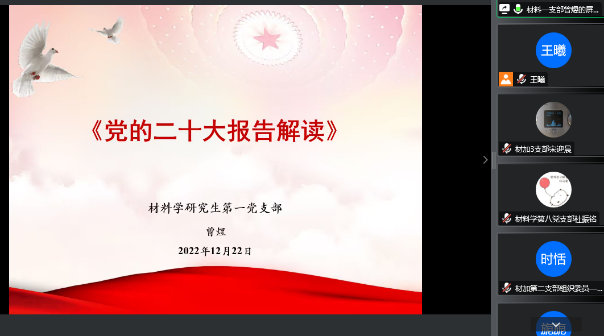 研究生党支部在学习党的二十大精神的过程中,持续在学懂弄通上下功夫,领悟二十大精神,制作精品微党课。 12月22日晚,A漫