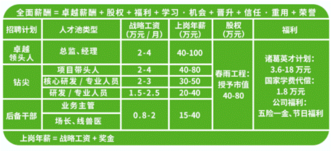 春雨工程:公司施行员工持股计划时,入职1-2年忠诚有潜力的大学生均有机会入选。
