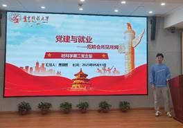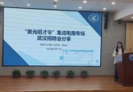 材料学研究生第二党支部危颖超同志和材料加工研究生第八党支部周玉涵同志就近期参加的招聘会的所见所闻进行了分享。危颖超同志说在招聘会他能感觉到很强烈的被需求感,华中大青年应该要有学校自信、专业自信和个人自信。而周玉涵同志通过详细的了解和调研总结了中国集成电路行业与企业的现状,认为应尽早结合自身特点寻找适合自身的岗位,为就业提前做好充分的准备。这次的“党建与就业”分享会使大家都获益匪浅,坚定了大家努力学习、科技报国的决心。