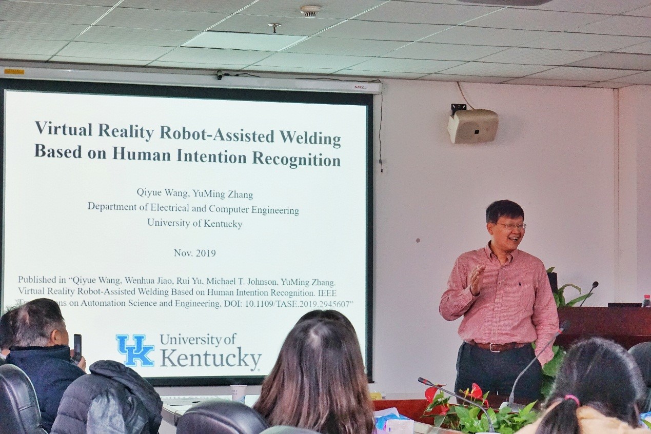 国际合作事务主任张裕明老师作了题目为“Virtual Reality Robot-Assisted Welding Based on Human Intention Recognition”的报告。A漫