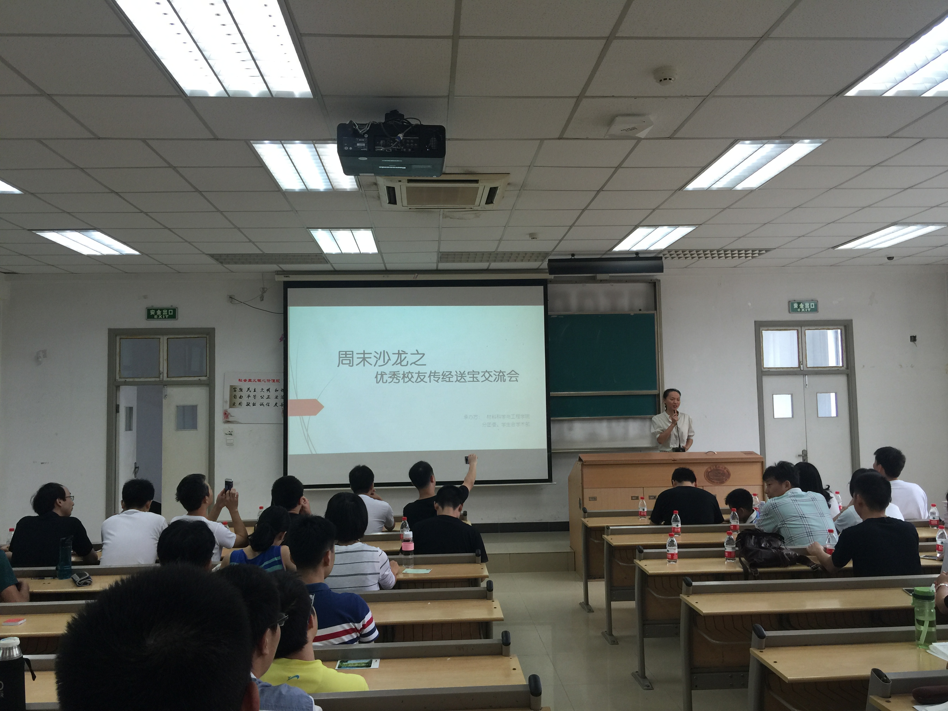 校友针对同学们学习情况、生活问题以及就职困惑进行了轮流发言交流。他们表示,学习就像海绵吸水的过程,在最能吸水的时候努力,而不要等到老了再留遗憾。同时校友们也关注着大家的身体健康,强调要保持健身。