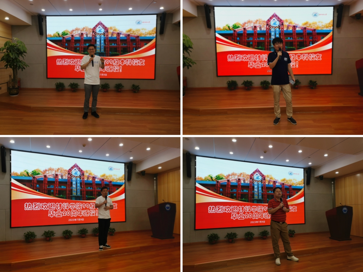日新月异的变化。材料9901班陆俊、材控9901班王治宇、材控9902班徐华阳、材控9903班范准锋、材控9904班周克林、材控9905班张伟等校友代表发言,校友们深情地回忆起二十年前恰同学少年时的校园时光,感慨A漫