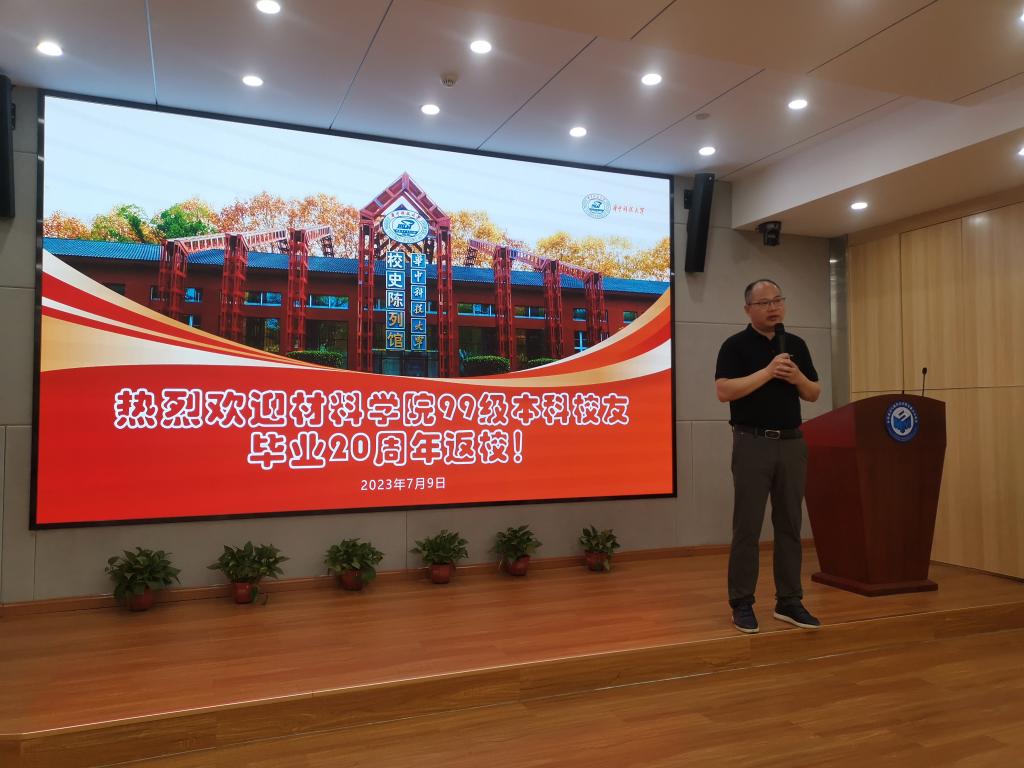 院长助理、院校友会执行秘书长计效园以“材料引领时代 我们改变世界”为主题,从历史沿革、学科实力、学术水平、人才培养、发展前景等为校友们做了详细的介绍,希望能加强校友们的联系,巩固校友们的感情,共同助力A漫