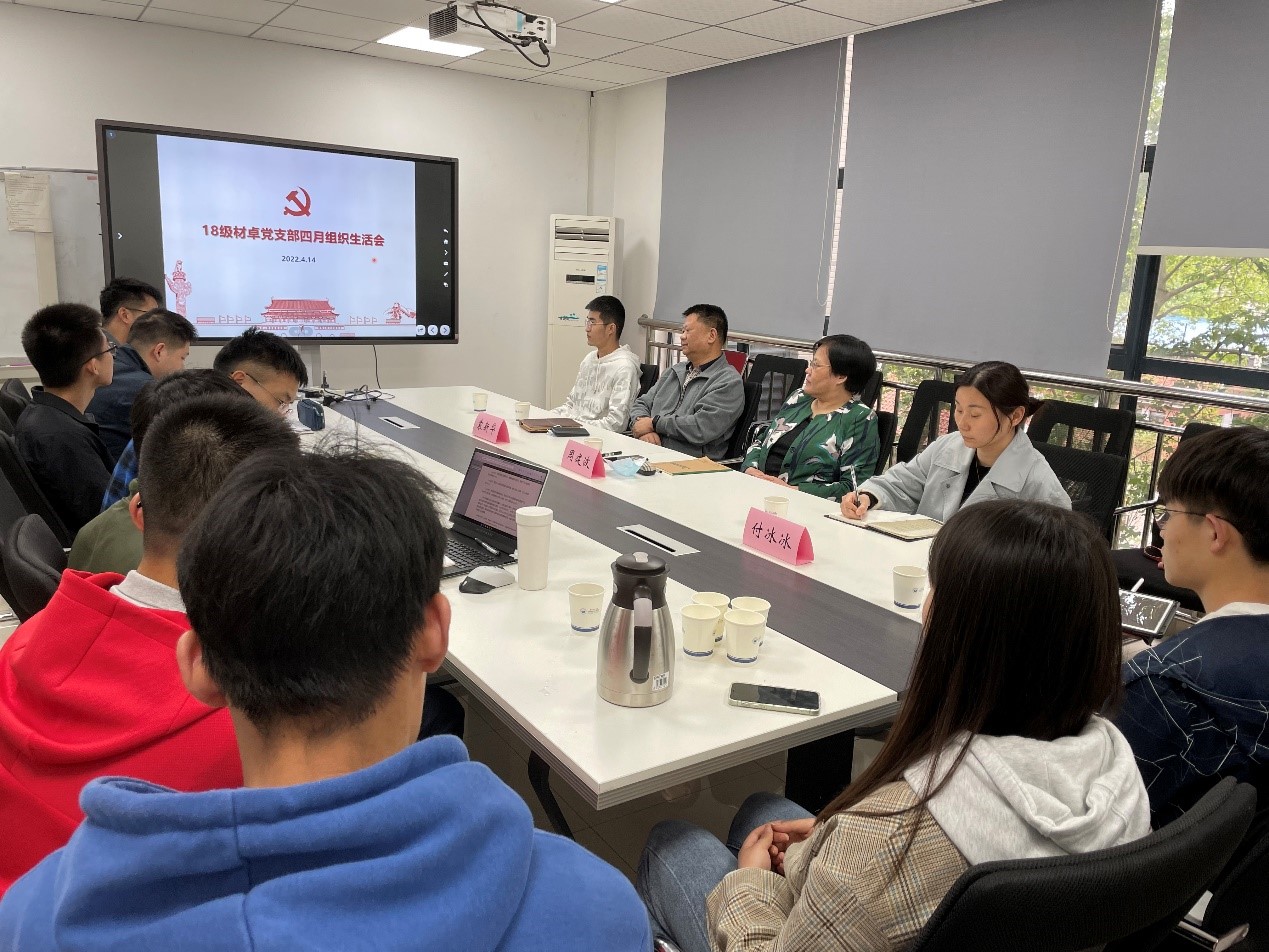 2018级本科生材卓党支部在先进制造大楼西楼C412会议室举行4月组织生活,校党委副书记、纪委书记周建波参加本次组织生活。