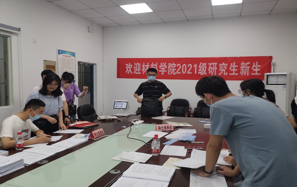 欢迎2021级研究生新生”的字幕,研究生工作组长王曦早早地和志愿者同学布置好了2021级研究生迎新现场,细心地为新生贴好路段贴示,有条不紊的进行迎新工作。A漫