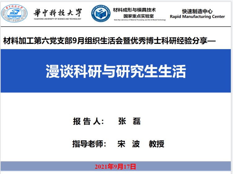 材料加工第六党支部张磊作科研分享