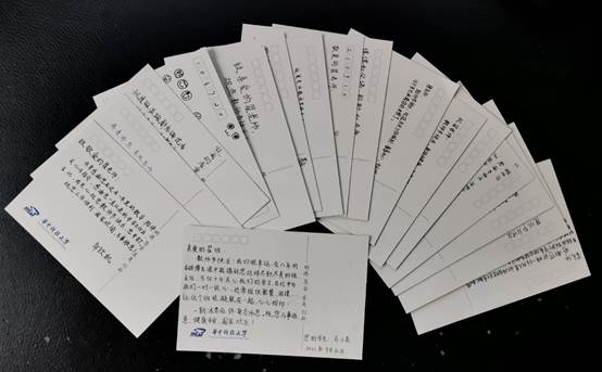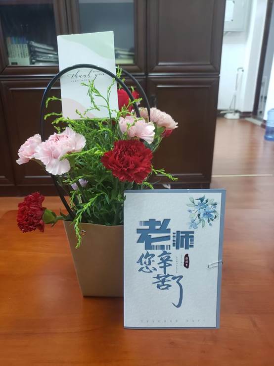 研究生为每一位老师送上亲手设计的教师节贺卡,清新淡雅的卡片、温馨的话语表达出学生对老师真挚的感恩之情,本科生为教师班主任手写明信片,感谢老师们的教导和陪伴、关心与指引。