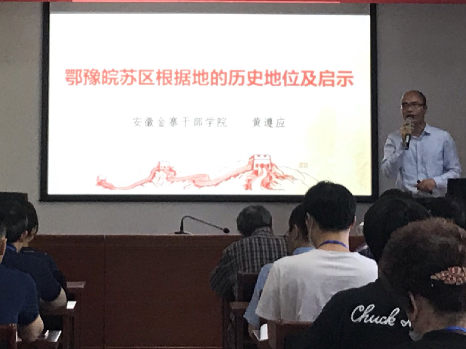 参加了党史教育专题讲座,金寨县红军历史研究会理事、金寨红色教育宣讲团成员黄遵应作了题为《鄂豫皖苏区根据地的历史地位及启示》的报告。黄遵应从鄂豫皖苏区根据地的历史概述、历史地位、历史启示三个方面,生动讲述了鄂豫皖苏区作为中国革命的重要策源地、人民军队的重要发源地的深刻历史意义。
