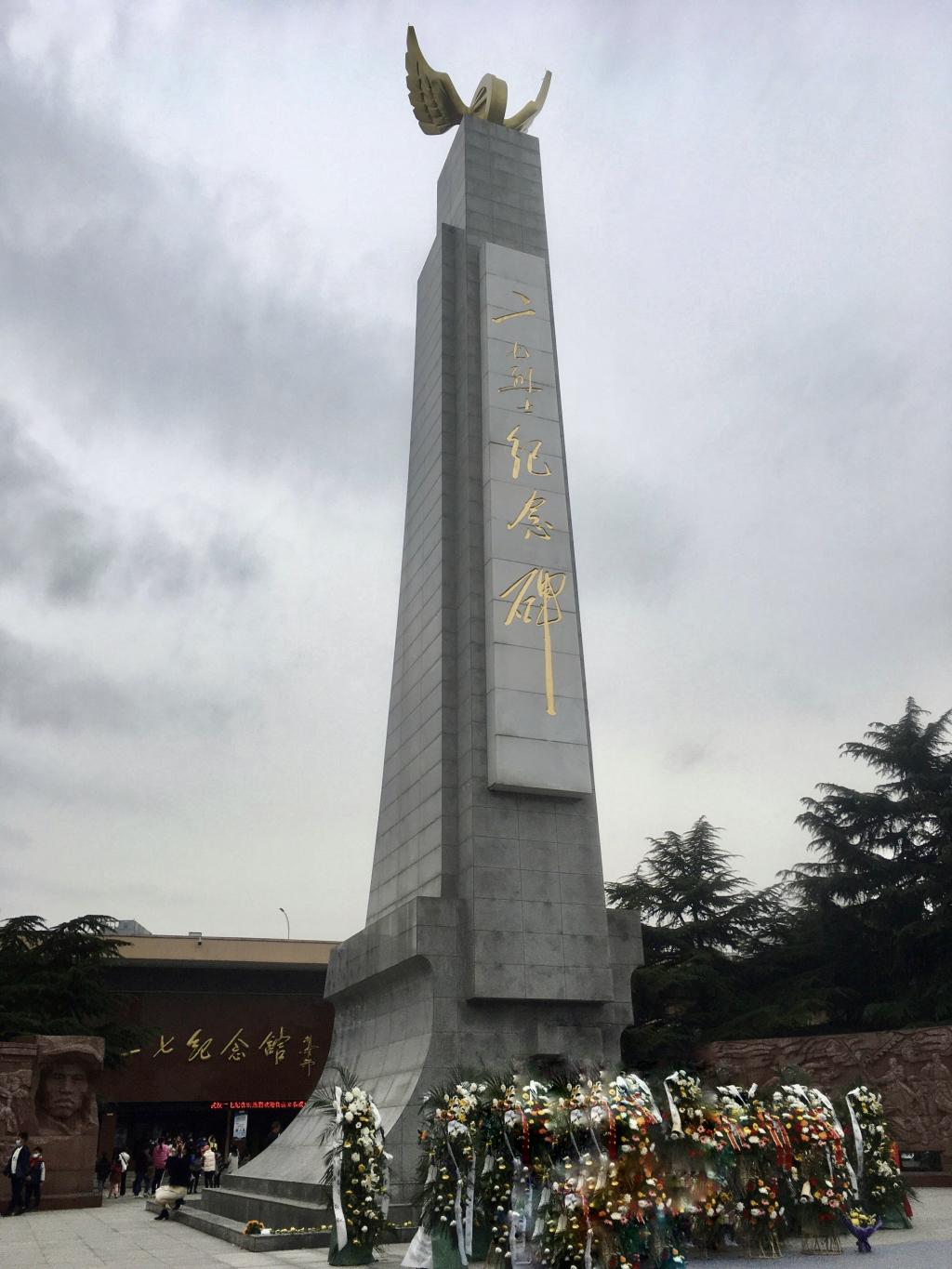 为了维护工人阶级的权益、进行反帝反封建斗争,在中国共产党的领导之下,京汉铁路的工人团体于1923年2月奋起反抗,全线罢工。但碍于北洋军阀及帝国主义列强势力猖獗,遭到反派武装残暴镇压,伤亡惨重。以施洋、林祥谦为代表的英勇斗争者壮烈牺牲。“勤奋励志班”成员在二七烈士纪念碑前深切哀悼,敬上鲜花。烈士的革命精神鼓舞着后辈前行,他们的风采在当下依然闪耀。