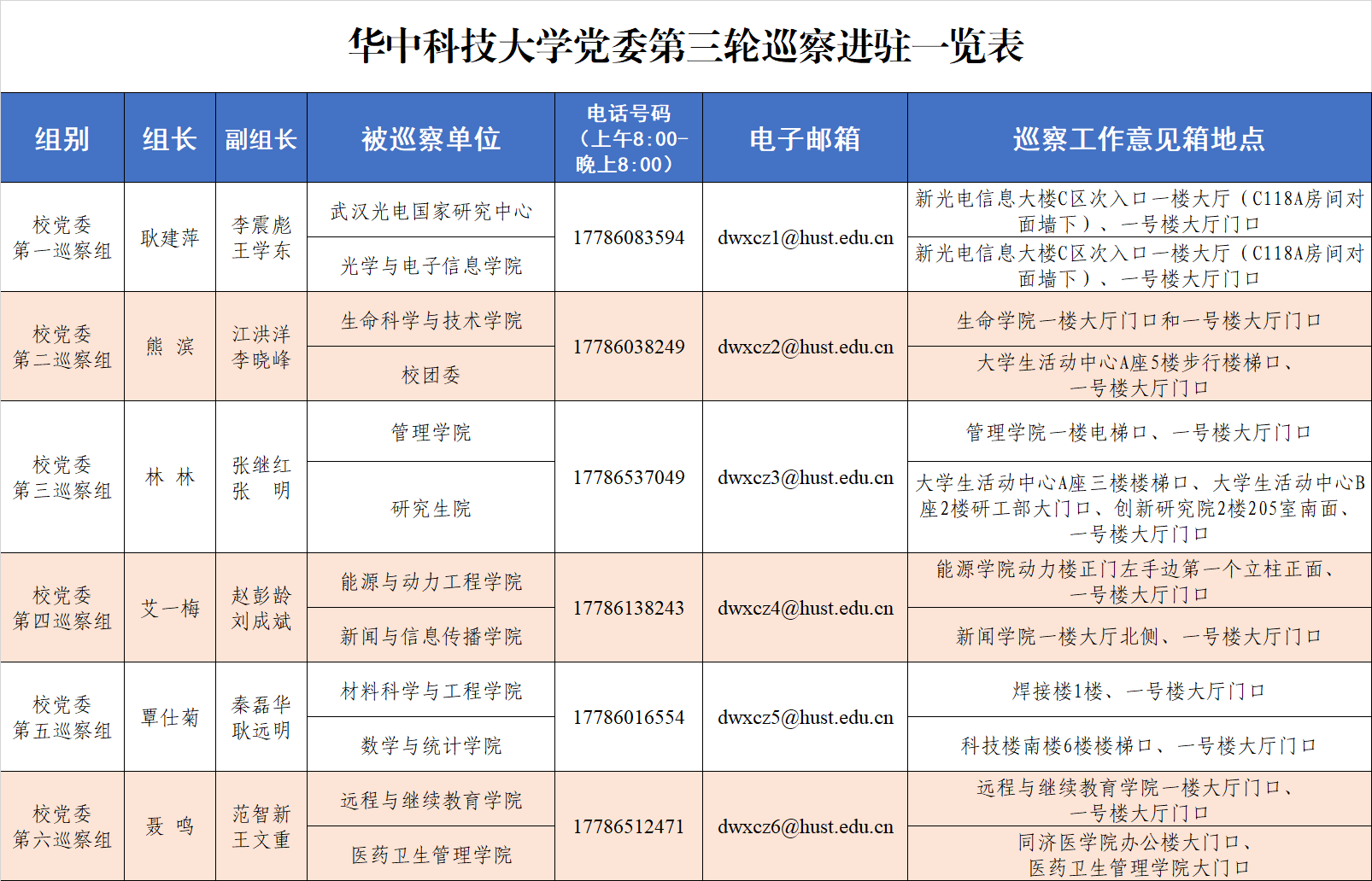 校党委第三轮巡察的单位为:武汉光电国家研究中心党委、光学与电子信息A漫