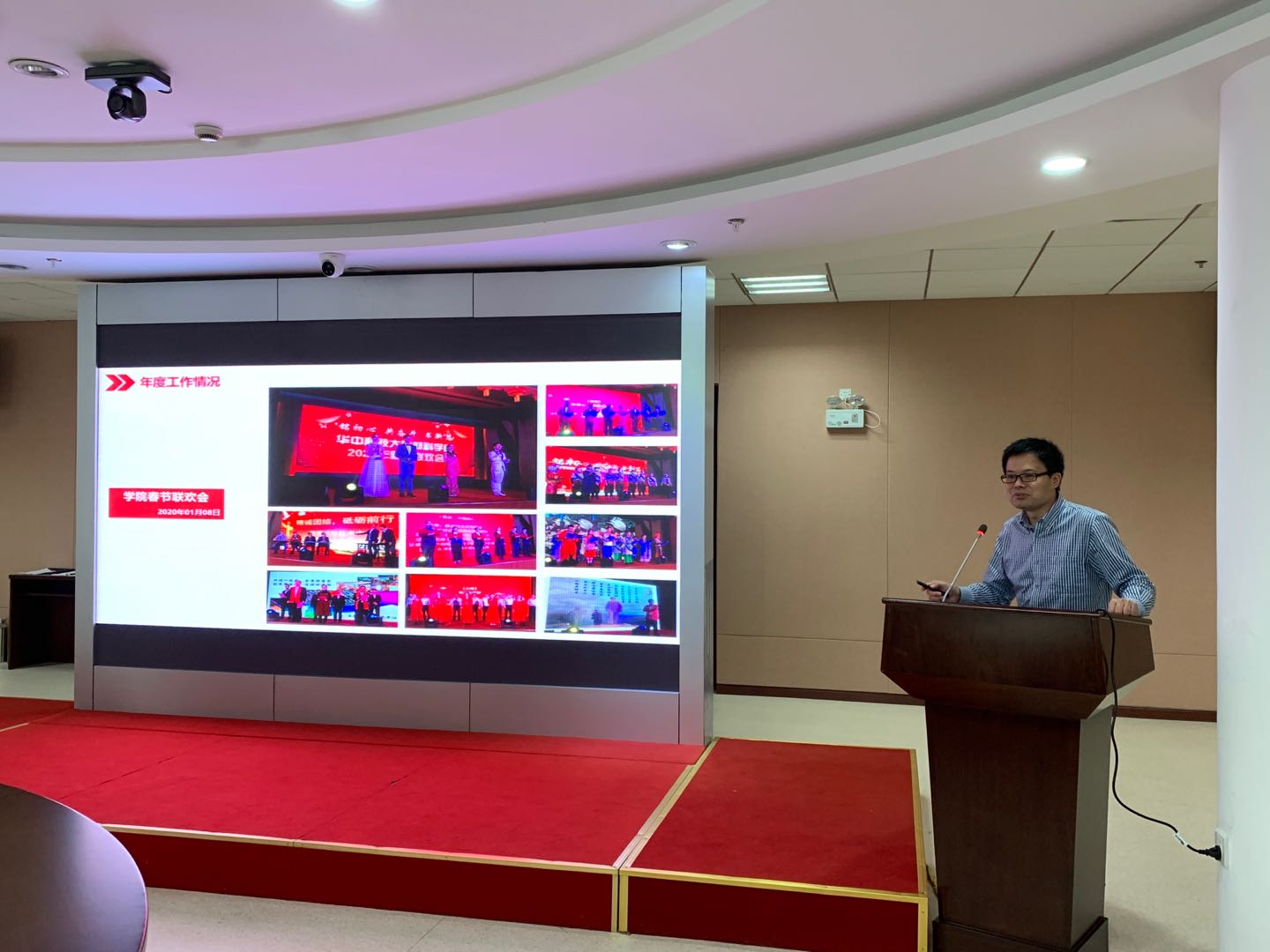全体教职工参会,中国工程院院士李德群出席会议,会议由A漫