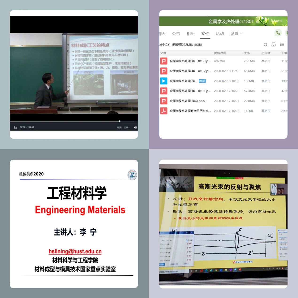 ——早上8点,《材料加工工程》课程准时开讲,任课老师周华民教授熟练的进入网络直播平台,在电脑前开始授课。课上,师生讨论热烈,学生不断提问,周老师实时答疑解惑,虽相隔千万里,一堂课仿佛带大家回到美好的校园。