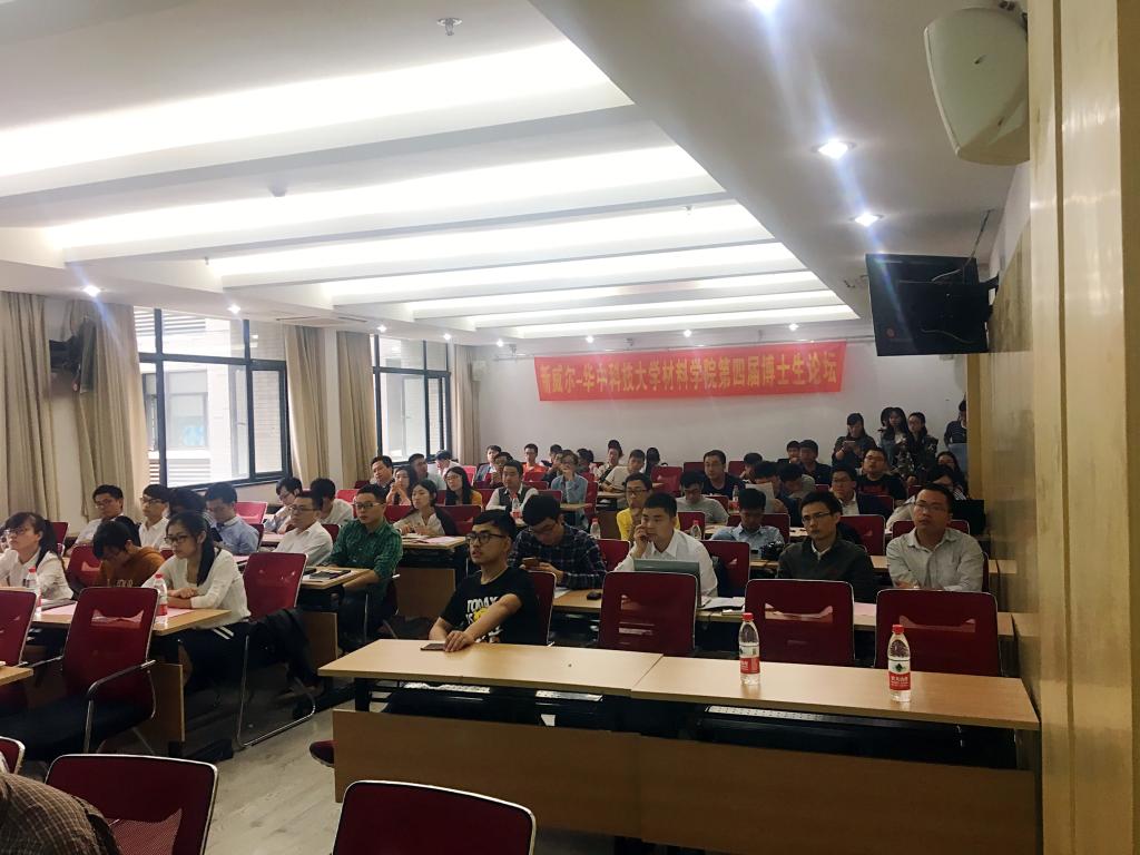 副院长杨君友教授在博士生论坛上发表了热情洋溢的致辞,对前来参加本次论坛的各位博士表示欢迎。紧接着黄云辉教授和王新云教授分别给到会的博士进行了专家报告,展示了课题组丰富的学术成果。黄云辉教授主要分享了功能材料方面的科研进展,讲述自己对锂离子动力与储能电池的认识和了解。“山穷水尽疑无路,柳暗花明又一村”,黄教授在进行学术交流的同时还通过文学来表达自己对学习和科研的理解,将科学与文学结合,使人受益匪浅。王新云教授主要讲述精锻成形过程行性控制与成型装备和长寿命精锻模具设计方法。两位专家的精彩报告得到了大家热烈的掌声。