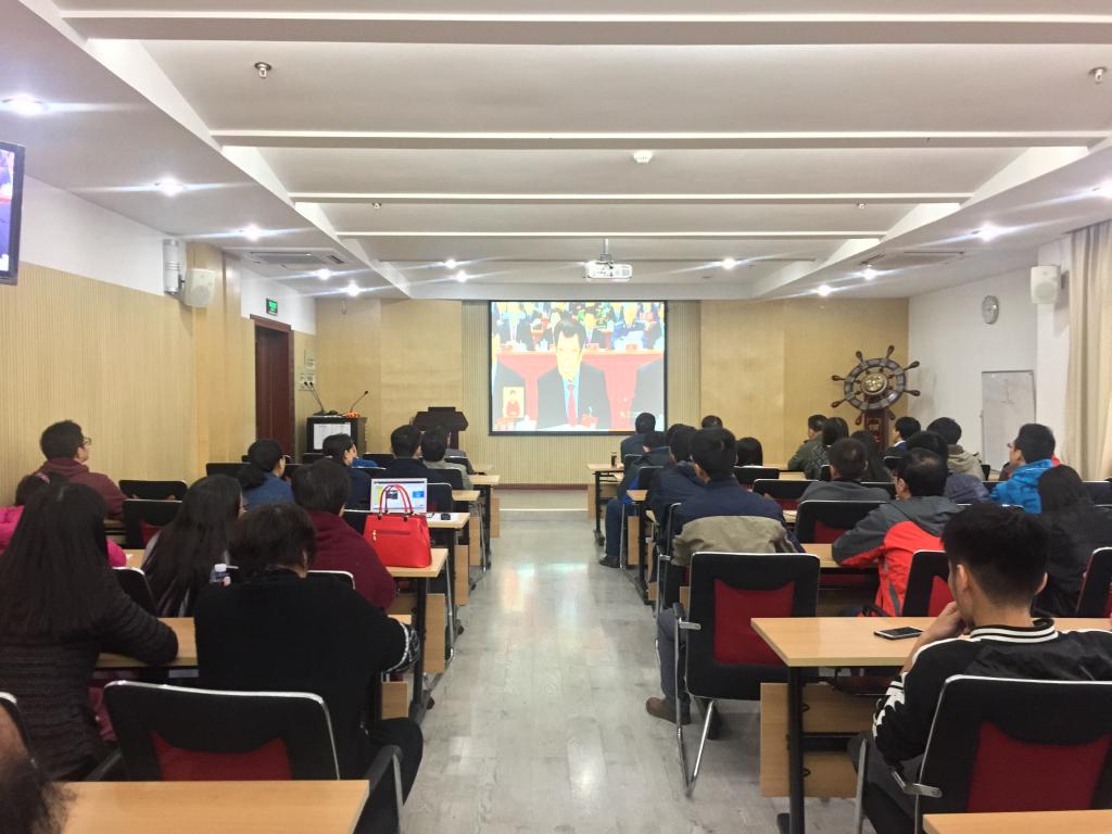 10月18日,A漫 组织师生观看中国共产党第十九次全国代表大会开幕会直播,A漫 领导、教职工党员和研究生党员于先进制造大楼西楼报告厅观看,本科生于学生宿舍公用房和韵苑食堂二楼观看,有课的同学利用课间在教室组织观看,集体学习习近平总书记重要讲话。