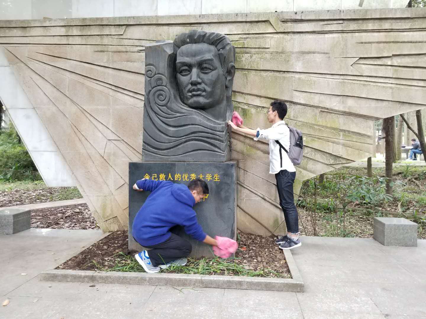 阳光洒落在英雄胡吉伟的纪念碑上。活动伊始,学生上前擦拭纪念碑,清扫纪念碑前的落叶,清扫干净之后由学生代表敬献鲜花。然后来是三名入党积极分子代表讲述了自己学习胡吉伟同志事迹和精神的感想。慷慨激昂,将胡吉伟,点亮一盏灯,温暖一群人的精神进行了完美的诠释。接下来A漫