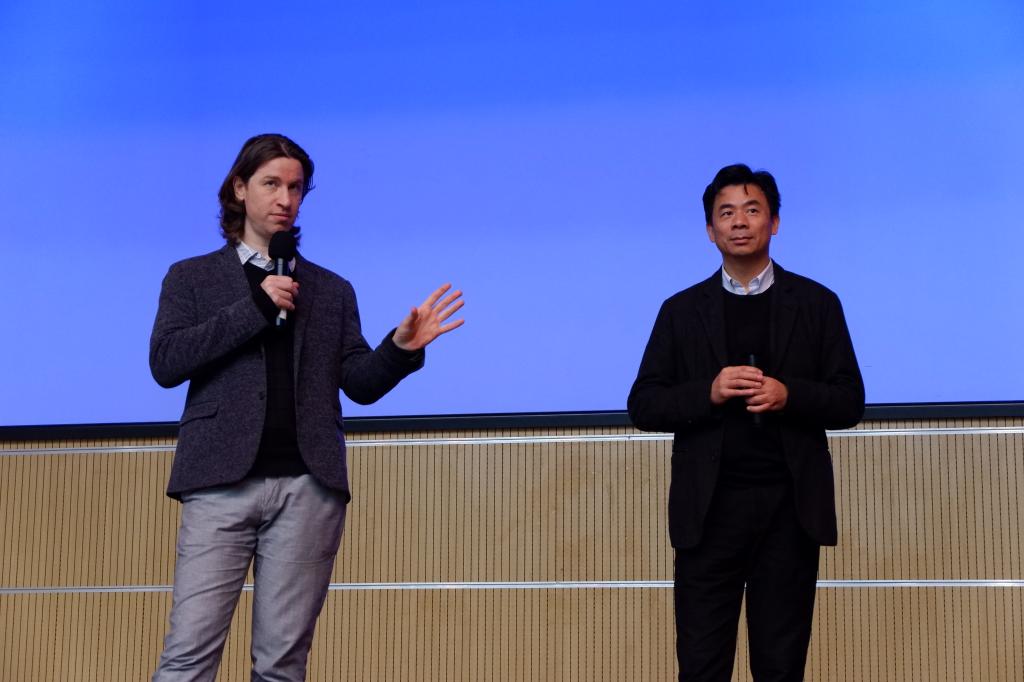 报告厅进行。本次讲座邀请到了美国著名指挥家、单簧管演奏家巴纳比·帕尔莫先生向同学们介绍古典交响乐,同时现场也邀请到了武汉青年交响乐团运营总监李云中老师进行现场翻译。