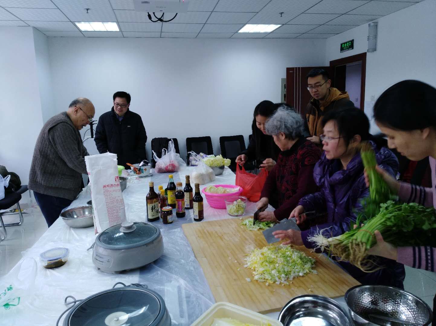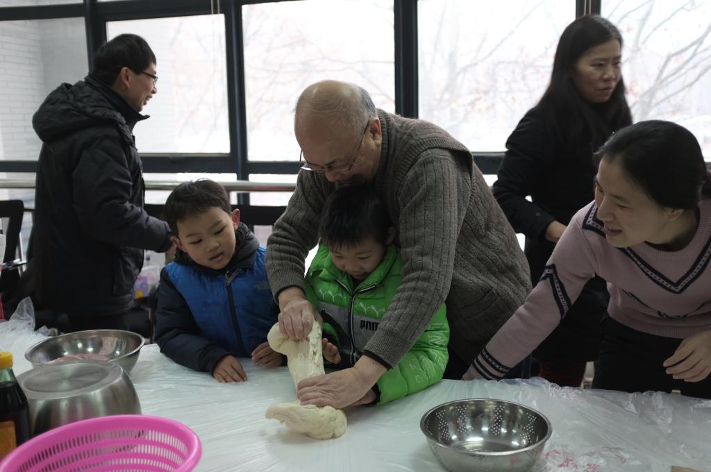 虽然积雪厚重,路面封冻,上届的“饺子达人”李德群院士和夫人王老师还是早早地来到比赛现场,开始了忙碌的准备工作。为了使饺子皮有着更筋道的口感,李院士决定亲自和面,其力道完全堪比风华正茂的青年。其他各组的组员们也不甘落后,洗菜、切菜、和馅,一气呵成,大有一番“我们也要做达人”的气概。赛场竞争之热烈……啥也不说了,看图吧!
