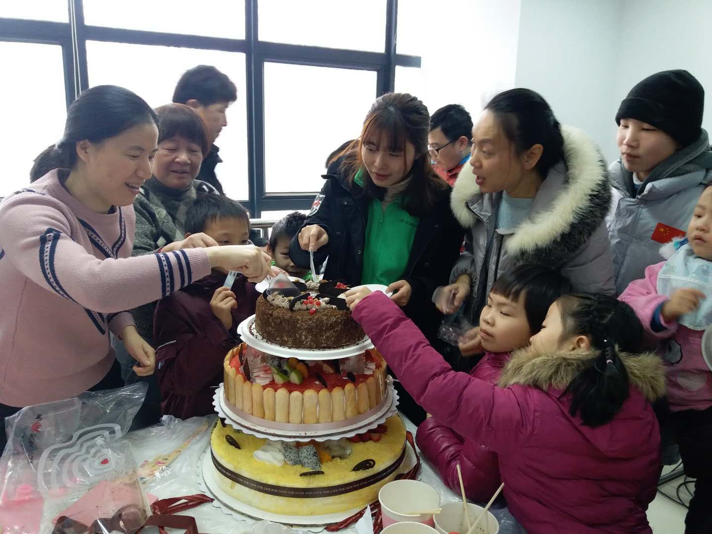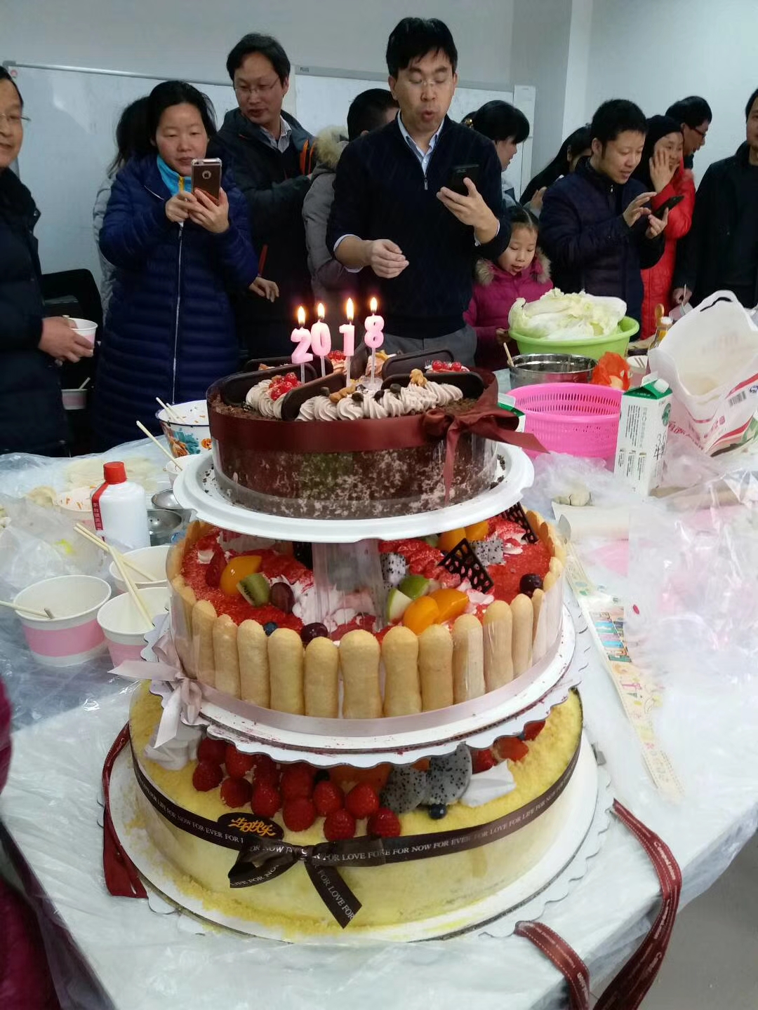 除了紧张又不失活泼的比赛之外,工会还为元月份生日的老师们准备了大大的surprise——一个华丽丽的三层大蛋糕!工会主席王新云做了简短的致辞之后,过生日的老师们吹熄了蜡烛,把切好的蛋糕分给早就在一旁等得流口水的孩子们,现场气氛顿时推向了高潮!