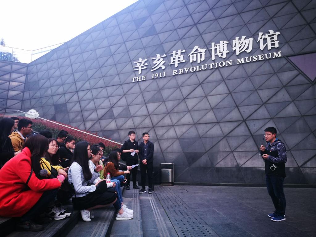 研究生党员首先来到坐落于武昌首义广场南侧的辛亥革命博物馆,在这里研究生党员们追忆红色足迹,汲取精神力量。厚重的花岗岩台基和刚劲的红砖浮雕,瞬间将大家带回到百年前的风云际会。整个博物馆陈列由五个展厅和一个序厅组成,大家在馆内讲解员的带领下,边听边参观,重温了辛亥革命的峥嵘历程。当党员们进入第三展厅,走在复原的武昌老街道上时,大家感觉自己仿佛置身在了1911年10月10日的武昌城,武昌起义的战斗号角似乎在每位党员的耳边吹响。