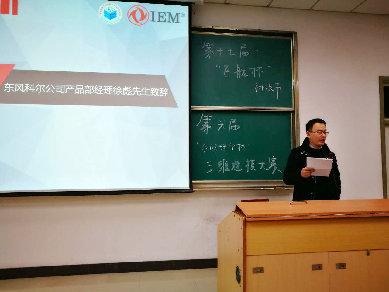 东风科尔产品部经理徐彪先生上台讲话,他强调了3D打印技术的重要性。在介绍公司的背景与发展现状的过程中,其产业精益求精,开拓创新的理念随之深入人心。徐彪经理在答疑的过程中,表示东风公司以后有为同学提供实习机会的可能性。