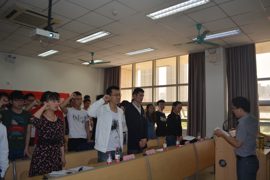 分团委书记易幸存的带领下,全体到会团员用青春的激情和坚定的语气重温了入团誓词:“我志愿加入中国共产主义青年团,坚决拥护中国共产党的领导,遵守团的章程,执行团的决议,履行团员义务,严守团的纪律,勤奋学习,积极工作,吃苦在前,享受在后,为共产主义事业而奋斗。”