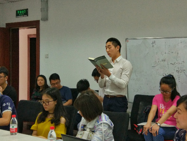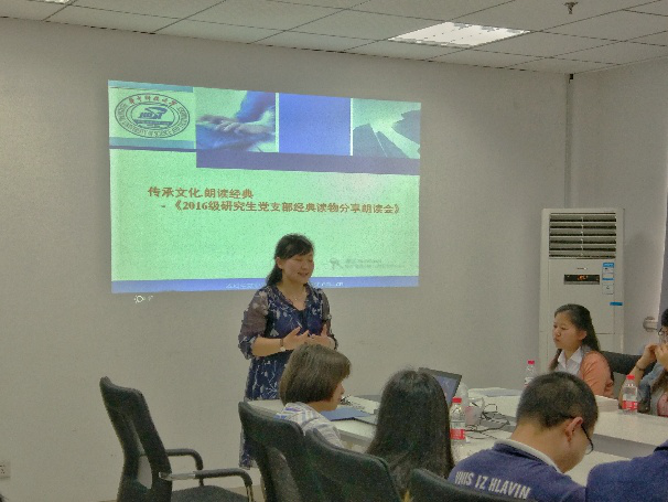 此活动的第三环节——传承文化,朗读经典之全年级党支部经典读物大荟萃活动于5月10日在先进制造大楼C412教室成功举办,由研究生工作组王曦老师主持,16级各班党支书、班长以及部分党员参加了此活动环节。