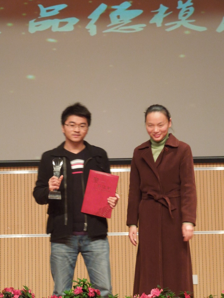 博士生陈朝吉获选。颁奖典礼上,院党总支副书记黄贝娜为陈朝吉颁奖。